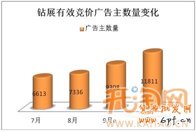 有效廣告主數(shù)量。7 月、8月、9月上半月期間,廣告主平均增速為13%。其中,7月上半月到7月底對(duì)比增長(zhǎng)速度為37% ,8月上半月到8月底對(duì)比增長(zhǎng)速度為41%,通過數(shù)據(jù)預(yù)測(cè)9月上半月到9月底為51%。9月份廣告主預(yù)計(jì)達(dá)到9000個(gè)。廣告主月平均增長(zhǎng)速度為19%,10月份競(jìng)價(jià)有效廣告主將破萬(wàn)。
