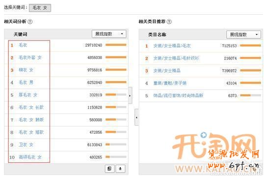 流量解析功能添加關鍵詞,流量解析,搜索相關關鍵詞,相關詞分析里面有各個擴展關鍵詞的展現(xiàn)指數(shù),點擊、轉(zhuǎn)化分析,這些詞都是淘寶推薦的搜索量比較大的詞;在相關類目推薦里面這里說明了您搜索關鍵詞的主搜索類目和輔搜索類目下的不同展現(xiàn),這里有助于我們優(yōu)化關鍵詞類目相關性這一點,提升關鍵詞質(zhì)量得分。