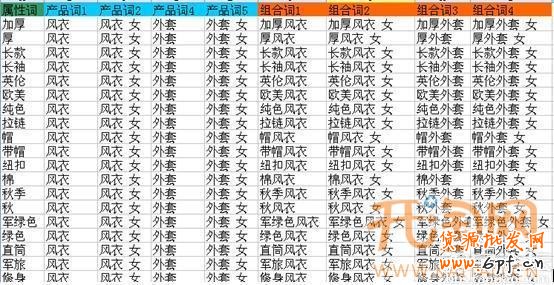 這個表格整理了我們寶貝所包含的主要關鍵詞,公式:=A$2&" "&B$2,用這種發(fā)放的好處在于,都是和寶貝最相關的,質(zhì)量得分相對來說都不會太低,屬性相關性不會拉動質(zhì)量得分。這么多關鍵詞還可以細分組合,一百多個關鍵詞不成問題吧。
