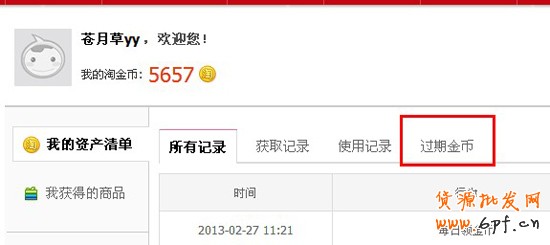 3、進入個人中心后,就可以看到“我的資產清單”里面就是個人淘金幣的全部信息了,點擊過期金幣,就可以看到自己的哪些金幣在什么時間會過期了。