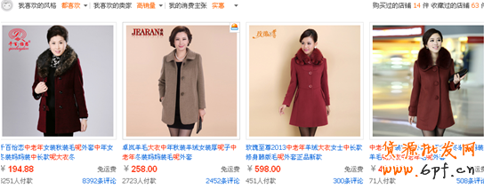 舉個例子,輸入中老年呢大衣,看下出來的主圖