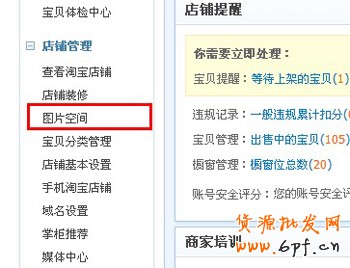 2、進(jìn)入打開的頁面,在頁面的左側(cè),找到“店鋪管理”——“圖片空間”;