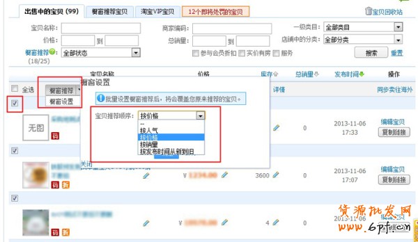 第二步,選擇您想報(bào)名參加1212的寶貝,點(diǎn)擊“櫥窗推薦——櫥窗設(shè)置”,選擇合適的寶貝設(shè)置為櫥窗推薦做好報(bào)名前的準(zhǔn)備工作