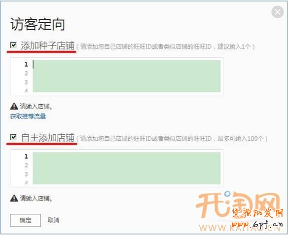 訪客是三個定向里最精準,價格最高的一個,它的操作主要是兩塊,分別是添加種子店鋪和自定義店鋪。