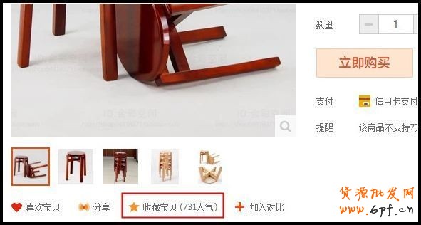 您可以在寶貝詳情頁面“收藏寶貝”按鈕右側(cè)查看到該寶貝收藏的人氣(如圖)