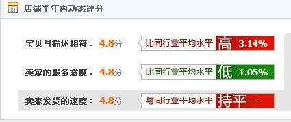 動態(tài)評分分為三個部分:一是,寶貝與描述相符度;二是,賣家的服務(wù)態(tài)度;三是;賣家的發(fā)貨速度。在這3個部分中,有可能是其中的一些動態(tài)評分低了,也有可能是全部動態(tài)評分都比同行業(yè)平均水平低。面對此窘境,我們要如何做才能讓動態(tài)評分飄紅呢?下面網(wǎng)店學(xué)堂小編與大家一起共同探討。