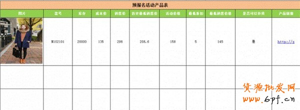 在參加活動前,我們必須要做好產品的選擇工作。遵循淘寶1.2.7規則,店鋪內一般都會有5-10個款專門用于活動報名,因此,在產品時,我們最好制作一個預報活動的表格,在表格中注明產品的最低價格、最低折扣等,以免在報活動時一個個翻找,占用時間,也影響了效率。這是讓如何通過活動讓產品銷量最大化的最基礎工作。