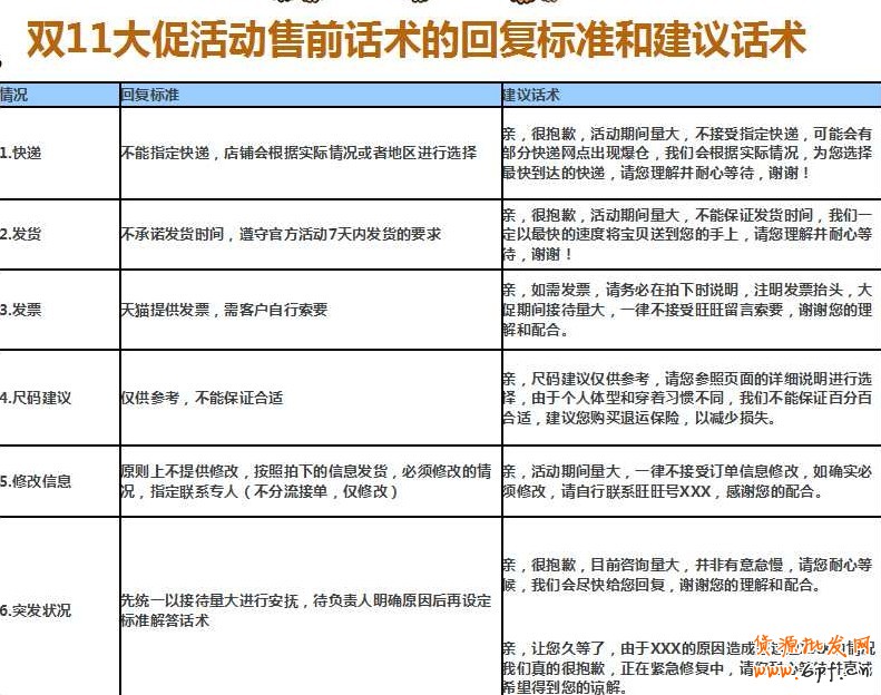 六、雙11大促活動(dòng)售前話術(shù)的回復(fù)標(biāo)準(zhǔn)和建議話術(shù)
