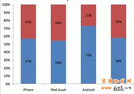 我來揭曉答案,先給大家看個圖:這是手機系統男女比例圖。紅色是女性,藍色是男性。