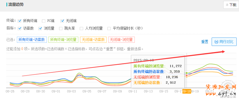 在直通車的輔助下,店鋪整體的流量情況是有明顯的上升趨勢,加購指標也在增長,總體的經營走勢在攀升,而且無線占比很大,潛在商機也是很強大的,繼續維護好數據反饋的同時也需要店內配合無線的裝修來提升無線的點擊轉化率。