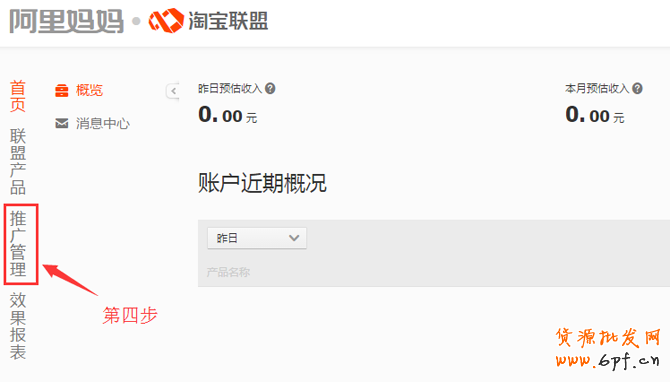 4、進到淘寶聯(lián)盟后找到左側(cè)的“推廣管理”并選擇
