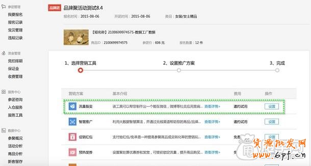 注意:在參加淘寶聚劃算報名排期后至開團結束前都可以進行設置,不管是品牌團還是商品團活動都是通過報名紀錄進入設置,不是通過寶貝管理進入。