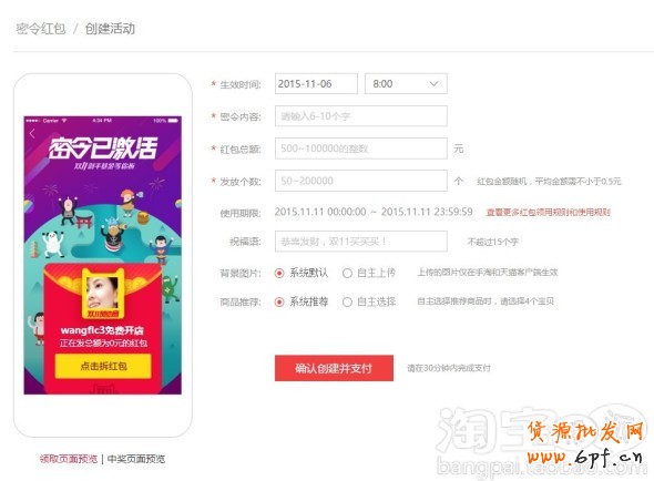 背景圖片:手機端拆紅包的背景圖片可自行設置。圖片內容不得出現反動、黃色、暴力、人身攻擊等違禁情況。否則取消本次密令紅包活動參與資格,同時按照《淘寶網規則》中的相應規定進行處理。不得出現侵權,虛假廣告等侵權或違法內容。不允許出現非自家品牌的品牌商標標識。只要接受用戶投訴并確認投訴有效,該商家將在此本活動中喪失所有參與資格,已設密令將全部下線。由此導致的侵權損失賠償及行政處罰等所有后果均由商家自行承擔。如果商家不進行背景圖片設置,則出現平臺默認背景圖。