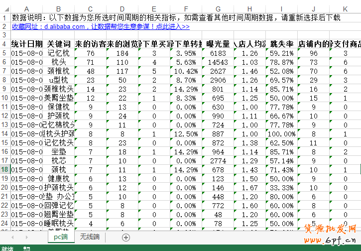 這個(gè)數(shù)據(jù)源的樣子賣家們比較熟悉,是直接從生意參謀上下載下來的樣子(因?yàn)橛行┰颍瑪?shù)據(jù)的值做了一些處理,非真實(shí),包括刪了一些店內(nèi)的品牌詞)。如果還不是很清楚,可以去生意參謀中選詞助手上去下載,可以下載自己店鋪的,包括行業(yè)相關(guān)的一個(gè)熱詞的一些數(shù)據(jù)。