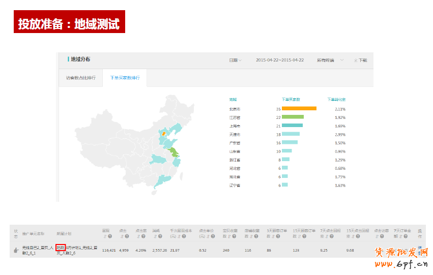 蓄水期:重點是計劃方面的測試,每一個測試階段都有不同的重點,例如,蓄水期就要對展位、人群、圖片、頁面去做測試。通過測試,賣家可以找到轉化好的組合,接著組合時間、地域等因子做測試。