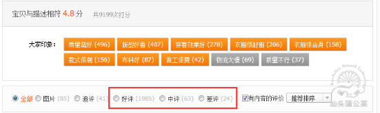 4、評(píng)價(jià):好評(píng)數(shù)比較占據(jù)所有評(píng)價(jià)的90%,少差評(píng)