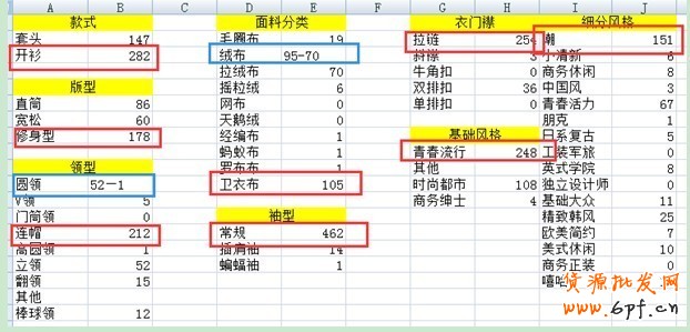 然后按照同樣的方法去統計其他的重點屬性值,把這些都統計到一個EXCEL表格當中,你就可以得到這樣一個結果!