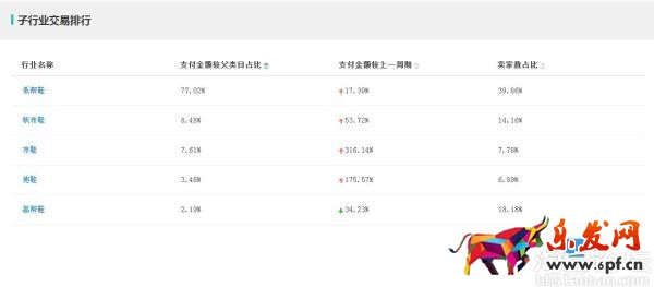 子行業(yè)的交易排行絕對是對葉子類目的一大福利,特別是 支付金額較上一周期 這個(gè)數(shù)據(jù),包括買家數(shù)占比,可以清晰的告知我們當(dāng)季最熱的子行業(yè)和競爭情況,這里列出了支付金額較父類目占比、支付金額較上一周期、賣家數(shù)占比,所有菜單都是按照百分比來展現(xiàn)的,清晰得知每個(gè)葉子類目的情況。