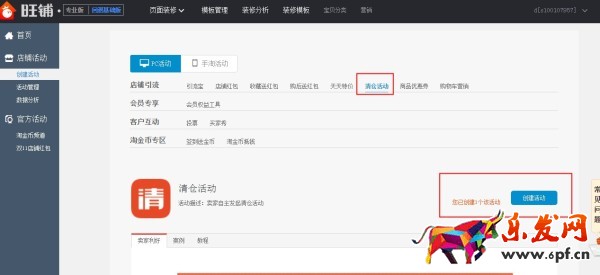 第三步:選擇pc端“清倉活動”先創建一個淘清倉的優惠活動