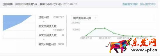 標(biāo)題分析:當(dāng)時也是看到豆瓣評分產(chǎn)生的靈感。這里的借勢有兩種,一是對熱點(diǎn)的借勢,當(dāng)時正火的是《大圣歸來》,二是對大眾熟知的產(chǎn)品的借勢,《小時代》大家都知道,雖然當(dāng)時已經(jīng)不火了,但是用戶的認(rèn)知里是有記憶的。另外對比也很巧妙,評分有對比,票房有對比,用戶很容易認(rèn)知失衡——為什么評分好的電影票房反而不好?通過對比刺激用戶的情緒,傳播量就很大。