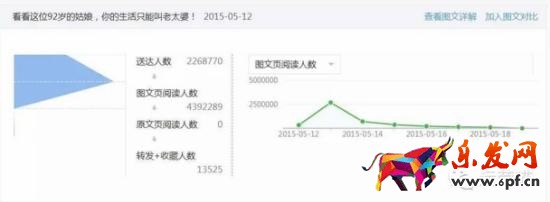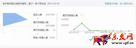 數(shù)據(jù)分析:這篇文章達(dá)到400萬+的閱讀量,是當(dāng)時粉絲數(shù)(200多萬)的2倍,可見迅速引爆朋友圈帶來大量的分享。