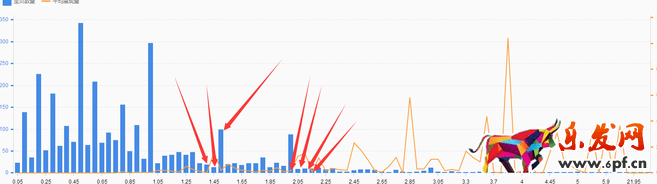 3.75的出價展現(xiàn) 215個 3.95的出價展現(xiàn)399個 3.9的出價展現(xiàn)竟有104613個,這個差價不是幾倍幾十倍啦,親們上百倍啦。其中一種情況就是 3.9價位的是成熟寶貝 3.75 和 3.95為新寶貝投入卡價位。所以現(xiàn)在看3元以下的競爭區(qū)間,對這里更適合新寶貝成長。