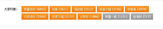 相信朋友們都熟悉寶貝的評價里面可能有些負面的標簽,這種是對寶貝評價不太好的標簽印象,天貓的是綠色的。最近觀察了下,目前很多大店的評價都或多或少的有這樣不好的印象出現,這個非常影響買家下單轉化,如果能這個負面黑色標簽印象改掉的話,應該會對轉化率有很大的提升。
