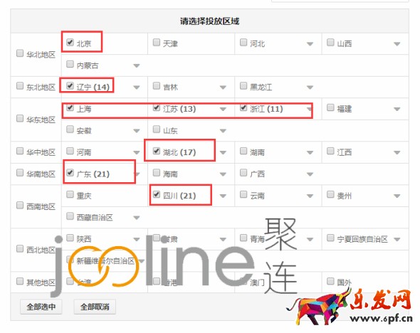 2.第二步:設置投放的區域,(這個最好是經過生意參謀的分析和流量解析的后臺分析得出)只投放幾個點擊量、轉化高的地區。