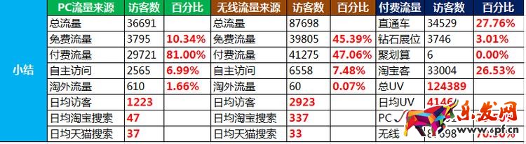 通過上述數據可以發現:按照目前店鋪的發展狀態,直通車占比應大于35%以上,短期內讓店鋪流量劇增,最終讓免費搜索流量占比保持在55%以上,今年的無線權重比較大,相對PC端來說,無線控制在65%以上,這樣在投入及推廣的方案中可以再次優化。