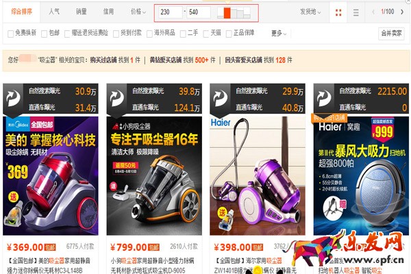 另外,我們再篩選價格區間“230-540”,價格太高或太低,影響進入豆腐塊,而且價格高對排名和銷量有所影響。