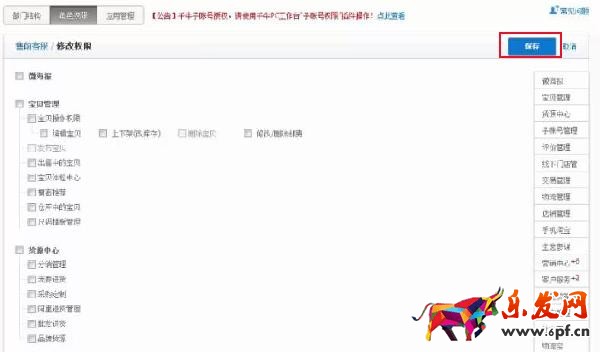 這時會看到很多店鋪管理權限,只需勾選特定的管理權限,點擊保存即可。