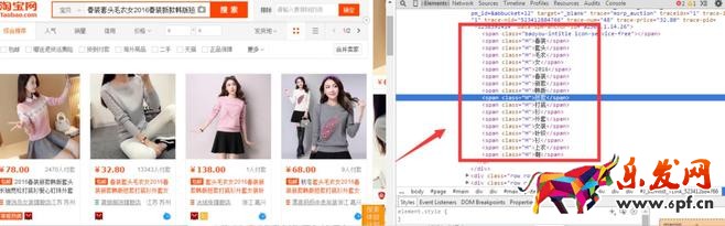 同樣,今天還是以春裝舉例,選擇一個寶貝,搜全標題,鼠標放在標題上面,右鍵點擊“審查元素”