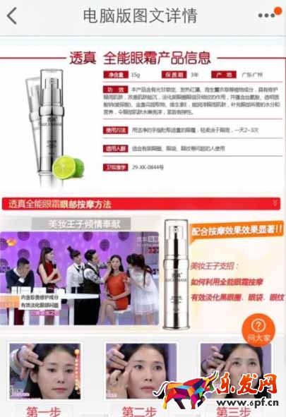 再來說說屏幕的變化,在PC端我們描述頁面中的圖片是橫屏展示的,因為我們的顯示器時橫屏的,轉到無線端后,由于屏幕變小原本橫屏顯示的圖片在更小的屏幕 中就沒辦法清晰展示,如果你無線端的頁面是一鍵生成的,那么可以到無線端看一下,PC端的圖片一鍵縮小后效果是很差的,這個時候我們可以把原本PC端橫屏 顯示的圖片重新設計成更利于在無線端展示的豎屏圖片,在這點上有些店鋪像阿芙精油做的就很好,感興趣的同學可以去它家看看。