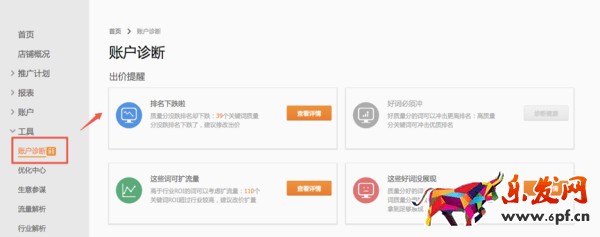 步驟一:登錄直通車后臺,找到出價診斷工具入口,工具首頁直接顯示您昨日需要優化出價的關鍵詞個數。