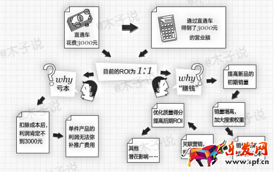 由于寶貝利潤(rùn)在日常運(yùn)營(yíng)中不是那么的透明,所以日常大家說ROI的時(shí)候,往往都是指“店鋪營(yíng)業(yè)額”這個(gè)基于金額的ROI。這種ROI的缺點(diǎn)是不能直接判斷出推廣的寶貝是否盈利,比如投入1000元直通車,產(chǎn)生1000元銷售,如果毛利是50%的話,實(shí)際上是虧損的,也就是基于營(yíng)業(yè)額的ROI,如果做到的話,并不是持平,而是虧損,所以數(shù)據(jù)分析還要準(zhǔn)確。