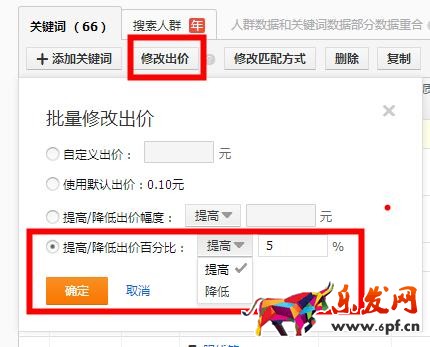 7天后,你要進(jìn)行添加詞和刪除詞,最后留下的詞并不多。那么這些詞你要根據(jù)昨天的數(shù)據(jù)做調(diào)整,平均花費(fèi)高的大于2元減低10%-15,大于1.5以上的的減低%10,大于1.1以上的降低%5。那么還有一些詞關(guān)鍵詞電機(jī)燒怎么辦呢?我們要%5的加出價(jià)。不管降低還是提高都要使用下圖。
