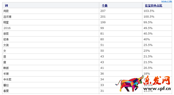 在關(guān)鍵詞卡位方面,因?yàn)榈赇伒幕A(chǔ)比較薄弱,所以盡量的通過關(guān)鍵詞避開競(jìng)爭(zhēng)對(duì)手,比較好的是,這類詞比較多,可選擇的余地比較大,通過“情報(bào)助手”的分析,可以看到競(jìng)爭(zhēng)對(duì)手最常用的前15位的詞分別是: