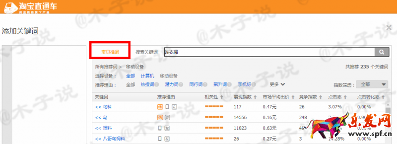 系統(tǒng)會自動的推薦一部分與自身寶貝相關(guān)的關(guān)鍵詞,在這個時候就要添加一些跟寶貝類目屬性比較相對的關(guān)鍵詞,在添加關(guān)鍵詞的時候 可以按點擊率或是轉(zhuǎn)化率從高到低的順序進行添加。
