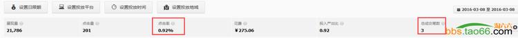 3月8日,點擊率提升到0.92,雖然沒有啥,竟然都成交了3單。很出乎我的意料,更重要的是,流量增加了,從22個流量增加到201個,增加了10倍!因此我們決定繼續,把無線端的折扣拉倒了220%。
