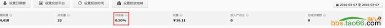 這個款從3月7日開始上車,每天店鋪基本上沒啥流量,全靠直通車帶動。第一天跟往常沒啥區別,CTR只有0.5%。