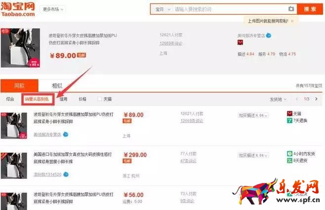 打開淘寶搜關鍵詞,搜索“皮褲”,然后找到自己的款式,點擊找同款: