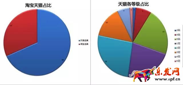 現在無線流量遠遠大于PC流量,所以選取手機端,再按照銷量排序,拉取前10頁的寶貝數,把淘寶賣家和天貓賣家的數量以及天貓商家中信用占比統計出來。