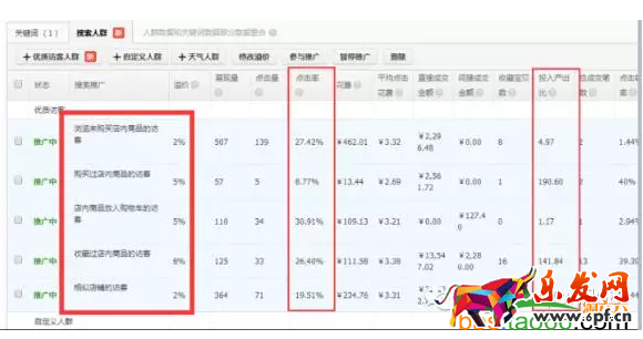 小愛:所以店鋪這里一定要投放,但是我發現很多店鋪這里完全沒有投放,所以是個誤區,通過以上數據投放顯示,放過購物車,收藏過,瀏覽過的點擊都很高,投產比最高的為購買過店鋪,所以大家可以加大投放,精細優化,這里的投放,明顯的會反饋在,我們的寶貝收藏和加入購物車人數明顯增加