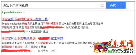 還是從這種情況說起,因為有很多的小微創業者,實際上有很大程度上獲得這種免費的自然搜索流量都是從下架時間的卡位來獲取的。首先說明一點:你除了要知道自己寶貝的下架時間,還要學會去查詢別的寶貝的下架時間。關于這一點,去百度一下“淘寶下架時間查詢”、“寶貝下架時間查詢”、“上下架時間查詢工具”……,可以在上面找到很多的免費工具,不信你看(為了避免廣告之嫌,我把所有關鍵信息都隱藏了,只是為了說明一下):