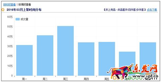 我擦,這玩意兒還要配合!!!當然需要,說過很多次,店鋪做的好不好,其實都是一個又一個的細節堆積到一起的,這一點我做到了,你沒有做,至少在這個得分上,我就取得了領先。。我們假設一下,你準備重點優化的關鍵詞,根據店鋪的實際情況,準備是:長袖連衣裙。路徑:生e經——行業分析——我的情報——情報助手——選擇好類目——寶貝按人氣前200排序——填好關鍵字——選擇好你準備競爭的價格區間——點擊上架時間分布,看下圖:哎呀,我去!!!這數據太牛逼了吧!是的,太牛逼了!(注:截圖都是截了一半兒,不完全,然后數據可以下載!)