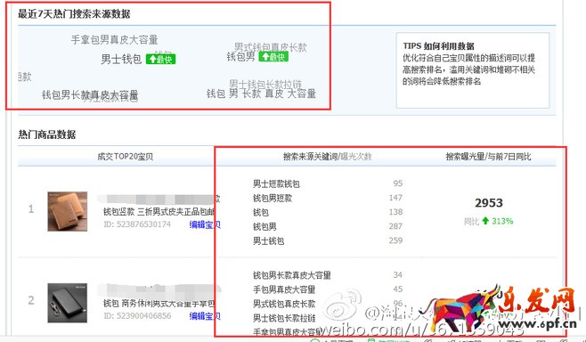 搜索來源里可以看到上升最快的詞和每個寶貝有曝光率的關(guān)鍵詞