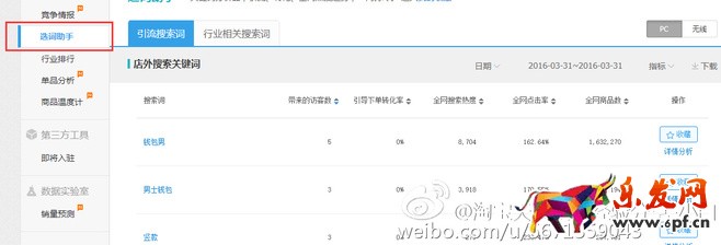 可以選店里任何一款分析這里可以看到PC的搜索來源和無線端的搜索來源