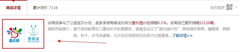解釋:參加淘寶的一個公益活動,每賣出一件寶貝就捐多少錢,在發布寶貝的時候可以進行設置,效果展示: