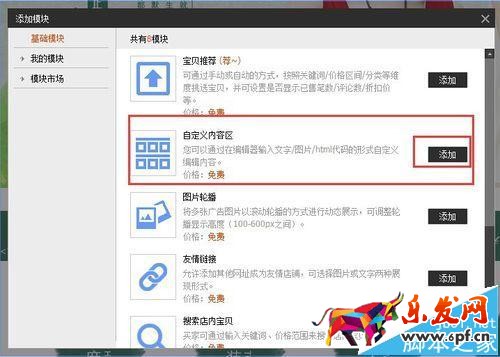 8、進入淘寶后臺店鋪裝修,添加自定義內(nèi)容區(qū),將代碼粘貼到源碼中