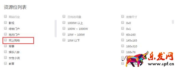 淘寶、天貓首頁,以及各個頻道大尺寸展位、淘寶無線app端、以及淘寶站外如新浪微博、騰訊、優(yōu)酷等各大優(yōu)勢媒體。可以在鉆展后臺“資源位”中查看,分19個行業(yè),其中“網(wǎng)上購物”為淘寶站內(nèi)的資源位,其他為全網(wǎng)資源。